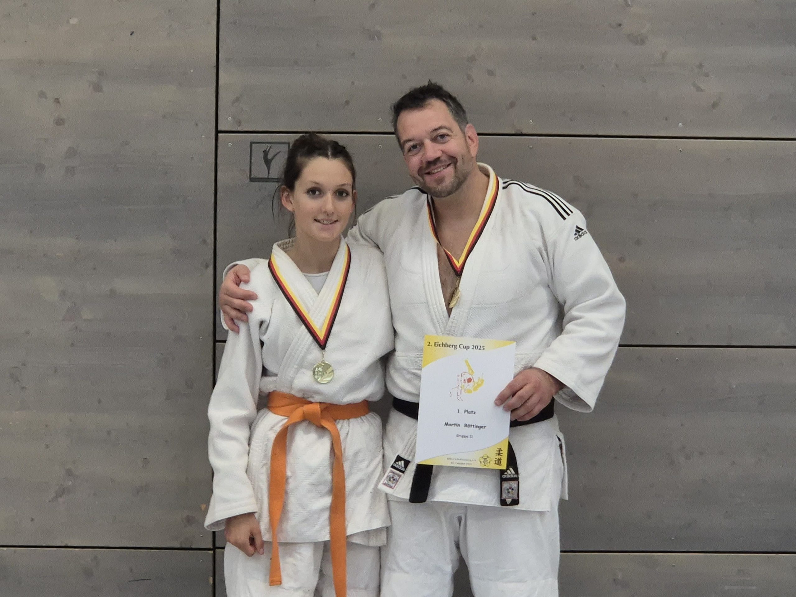 Judo: Martin Röttinger, seit Jahren sehr erfolgreicher Judo-Kämpfer des TV Denzlingen, und seine inzwischen ebenfalls sehr tüchtige Tochter Marie standen am vergangenen Wochenende beim „Eichberg-Turnier“ in Blumberg beide ganz oben auf dem Siegertreppchen. Beim „Eichberg Cup“ für Erwachsene wurde Martin Röttinger Sieger in seiner Gewichtsklasse bis 100 kg. Bein Turnier für Kinder gewann auch Marie in der Altersklasse U 15 bis 52 kg ihre Kämpfe und wurde Siegerin.
