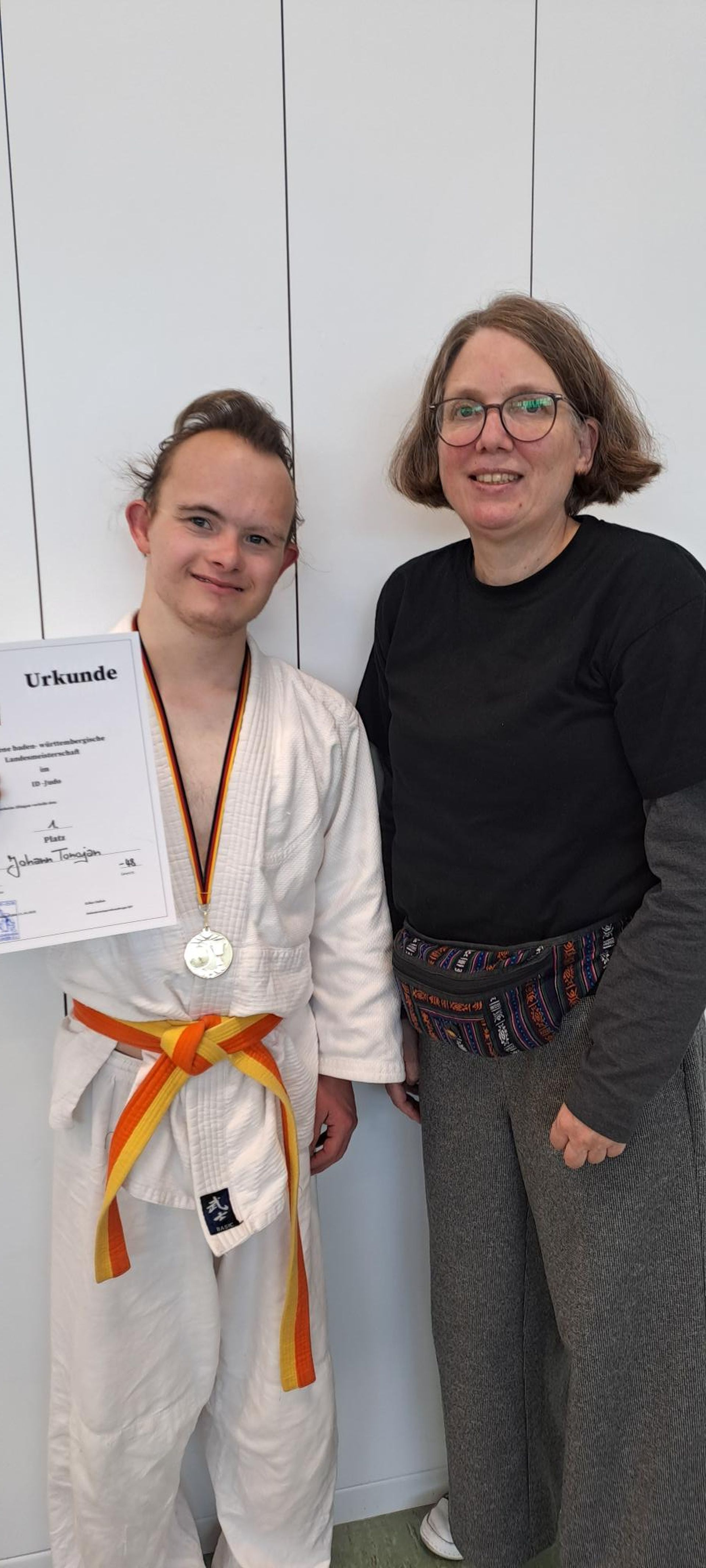 Judo: Große Freude herrscht bei der Judo-Abteilung des TV Denzlingen über den besonderen Erfolg von Johann Tonojan, der am vergangenen Samstag bei den Landesmeisterschaften im Behindertensport in Bietigheim nach mehreren Kämpfen als Judo-Landesmeister der Jugend hervorging. Mit ihm freute sich vor allem seine Trainerin und Jugendwartin, Inken Bringmann, die ihren Schützling nicht nur gut vorbereitete, sondern am Wettkampftag auch zur Seite stand. Ausrichter der Meisterschaften war der Badische Judo-Verband mit Special Olympics Baden-Württemberg.