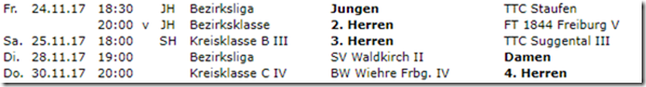 Sa. 09.12.2017 – 18:00 TV Denzlingen-TTC Schopfheim/Fahrnau
