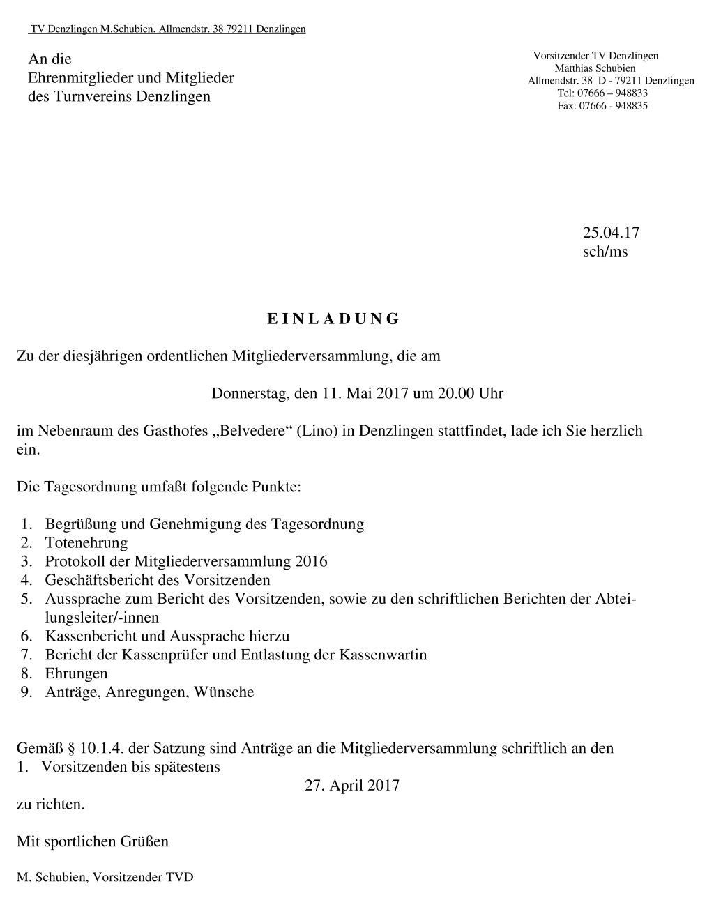 TVD Jahreshauptversammlung 2017