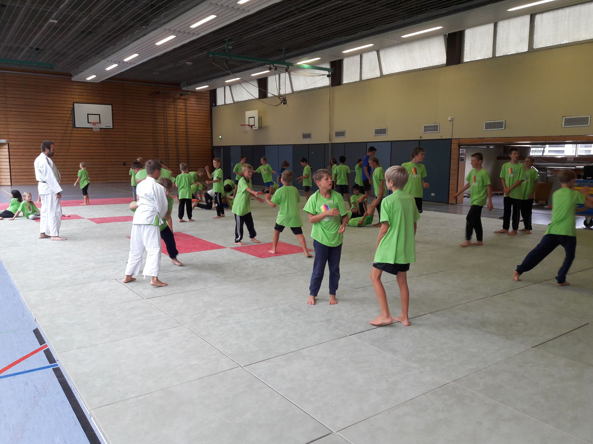 TVD-Sport-Sommercamp: Im Laufe dieser Ferienwoche findet auch dieses Jahr wieder das TVD-Sportcamp mit verschiedenen Sportarten statt. Täglich unterrichten dabei lizenzierte Übungsleiter von 9 bis 17 Uhr Kinder in verschiedenen sportlichen Disziplinen. „Eine Veranstaltung, die unschlagbar günstig“ sei, wie der TVD-Vorsitzende Matthais Schubien bereits anlässlich der Mitgliederversammlung vor den Vereinsvertretern betonte. Neben dem täglichen warmen Mittagessen gibt es am morgigen Freitag auch noch ein Abschlussfest.  Auf eine große Werbung hierfür wurde bewusst  verzichtet, da man nur etwa 40 Kinder aufnehmen kann und sich bereits vor Wochen viele Teilnehmer des Vorjahres erneut anmeldeten. VHzH wird nächste Woche ausführlich berichten. Unser Bild zeigt die Sportcamp-Teilnehmer beim Judo-Training am Montag dieser Woche.